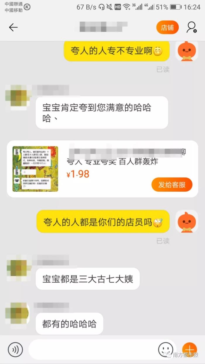 某宝出售的夸人服务