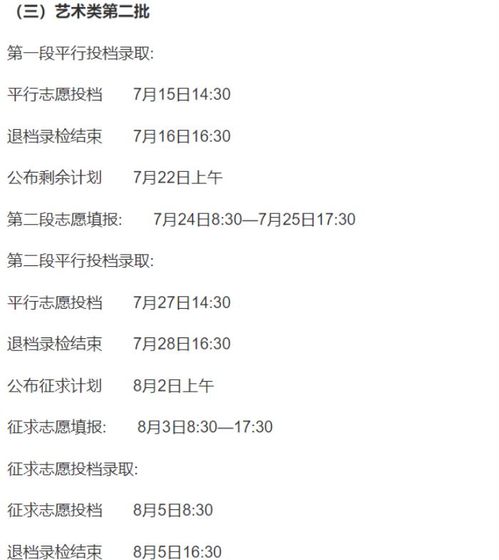 艺体类录取日程: