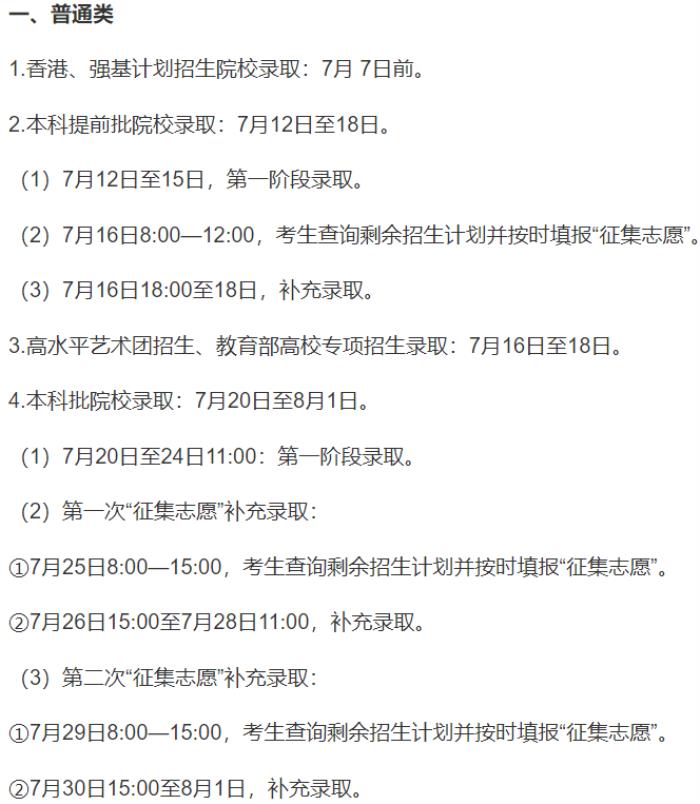 注意:高考录取时间如有变化,请以省招办最新通知为准。
