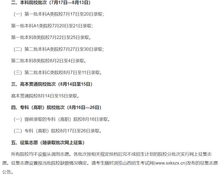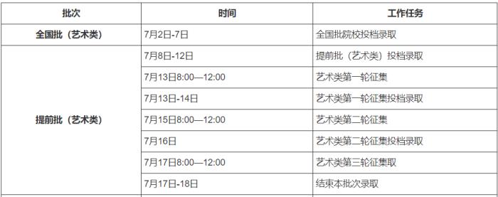 7月上旬至8月上旬,实施各批次院校投档录取。