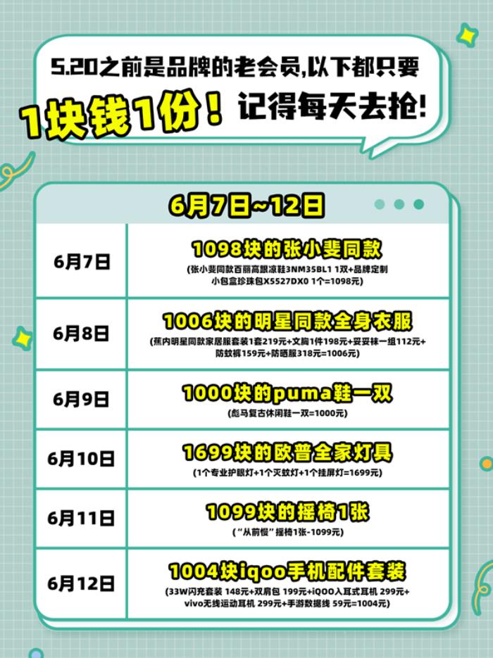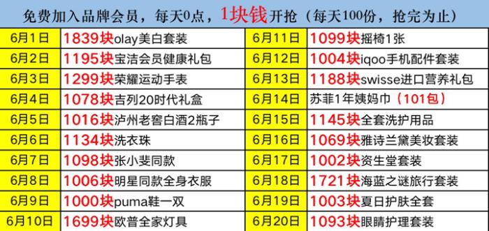 6月1日至6月20日,天猫联合20个品牌推出会员答谢礼活动,每天0点开放一个品牌的答谢礼抽奖,有机会获得价值千元大礼包,仅需1元换购即可拿下!