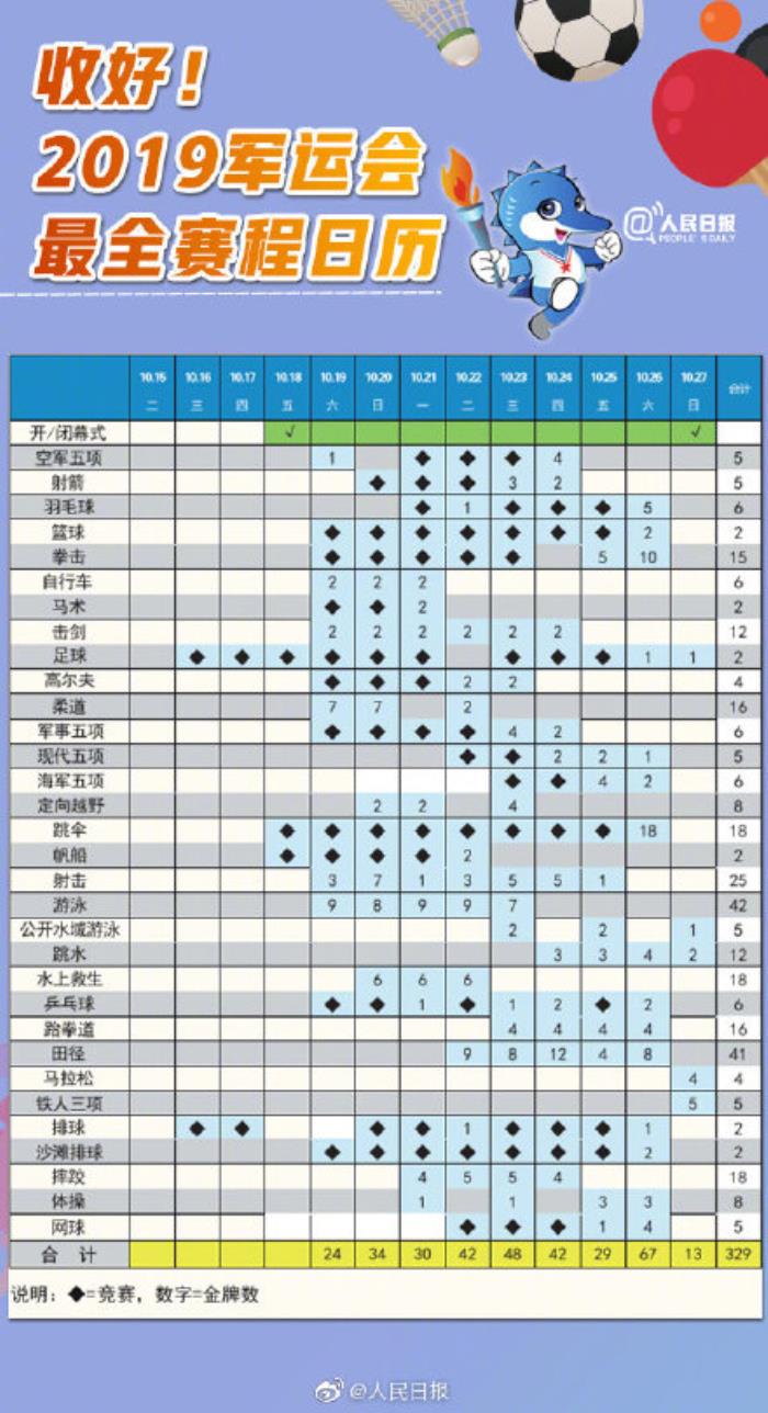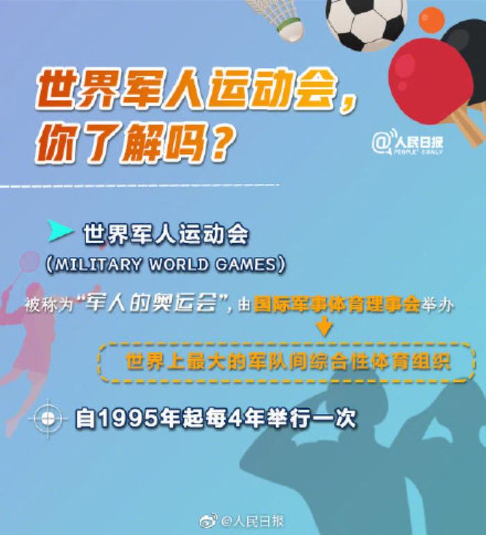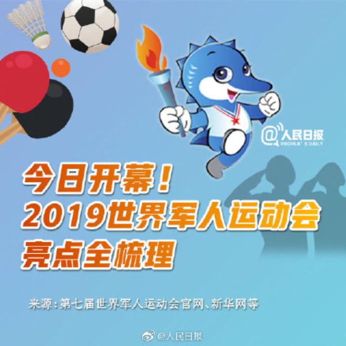 【2019世界军运会今日开幕,这些亮点不容错过】①硬核军运会独有项目:军事五项、空军五项、海军五项、定向越野、跳伞;②体坛名将同场竞技:袁心玥、樊振东、汪顺、王简嘉禾等将亮相;③开幕式:真水、真桥、真人演绎《清明上河图》,采用国内首创、目前世界最大的全三维立体式舞台。