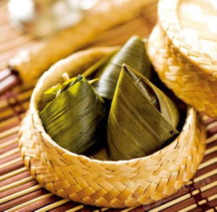 以后,每到这一天,人们便用竹筒装米,投江祭奠,这就是我国最早的粽子——"筒粽"的由来。就是说我们现在吃的叶子包的粽子,其实在以前是竹筒装起来的。