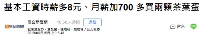 此外,岛内民众的工资上调甚至也用“茶叶蛋价格”来衡量。8月14日,台“劳动部”召开“基本工资审议委员会”,决定从明年元旦起,基本工资月薪调涨700元(新台币),时薪则涨8元(新台币)。台媒报道称,月薪涨幅是近四年最低,时薪涨幅则是次低。以月薪来说,相当于每天“加薪”23元(新台币),仅可多买两颗茶叶蛋。有台媒评论称,明年是选举年,台当局上调工资是“为选举考量”。