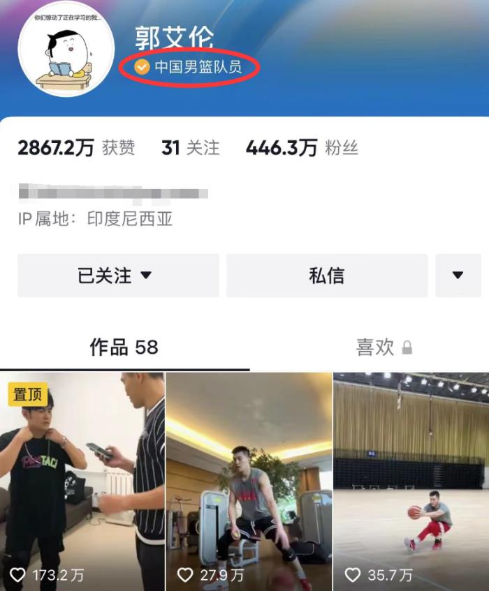 包括他晒出的一系列训练视频,也都是在国家队或者是参加赵继伟婚礼的视频,没有辽宁队的元素在其中,不是知道郭艾伦这个人就是辽宁队的核心的话,那么说实话你可能都不清楚他是哪个球队的,就知道他是中国男篮的一个顶尖超级巨星,你如果只看他的认证,就只会得出这样的一个结论。