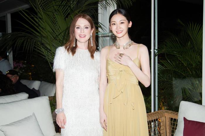 昨日,冯女郎苗苗在戛纳出席时尚晚宴,一袭清新长裙,搭配精致珠宝,尽显优雅温婉气质,在当晚活动中,苗苗遇到同样受邀出席的朱利安摩尔,两人拥抱合影,分外有爱。