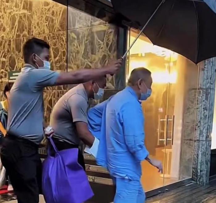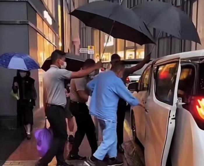 刘銮雄的几个保镖,有的扶着他,有的细心打着雨伞,把刘銮雄小心翼翼扶上了车。那么这次甘比为何不扶着刘銮雄呢?