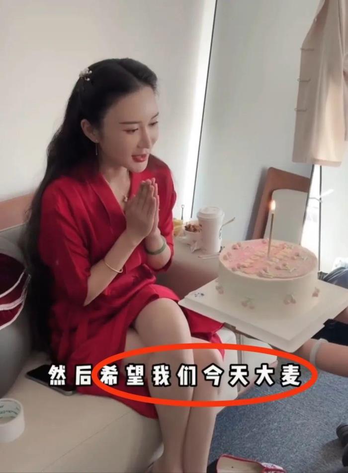 杜星霖跷二郎腿许愿,一袭红裙妆容精致,生日当天还在忙直播带货——引言。
