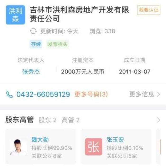 这偶像剧一般的情节瞬间就引起了网友们的注意,大家用企业信息查询的软件查证了一下,发现该爆料不假,魏大勋的父亲叫魏绍林,是吉林省金源农业科技发展有限公司的董事长,名下确实有18家公司,而魏大勋跟其中的8家公司有关联↓