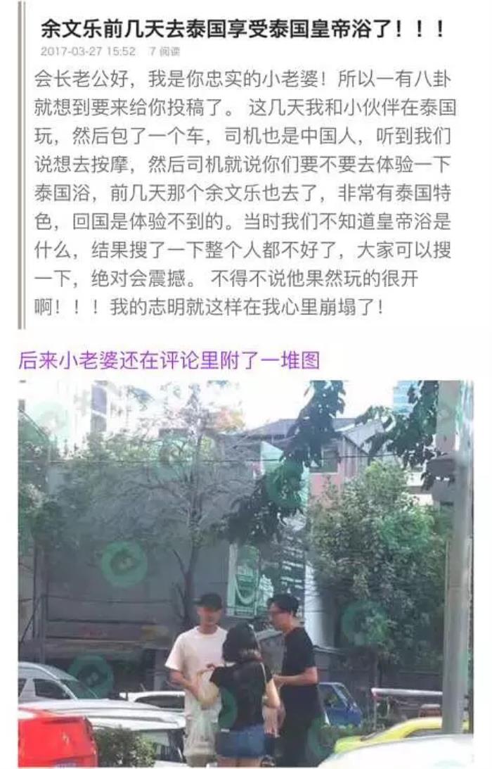 时间再调回今年,就在余文乐公布婚讯的前几个月,有人向关爱八卦成长协会的会长投了稿,说自己在去泰国游玩的时候,撞见余文乐去洗皇帝浴,皇帝浴是什么东西?鱼也是听了科普才去百度的,发现真的是不可描述呢!总之,余文乐在和王棠云交往的时候还出去鬼混,是个不争的事实了~