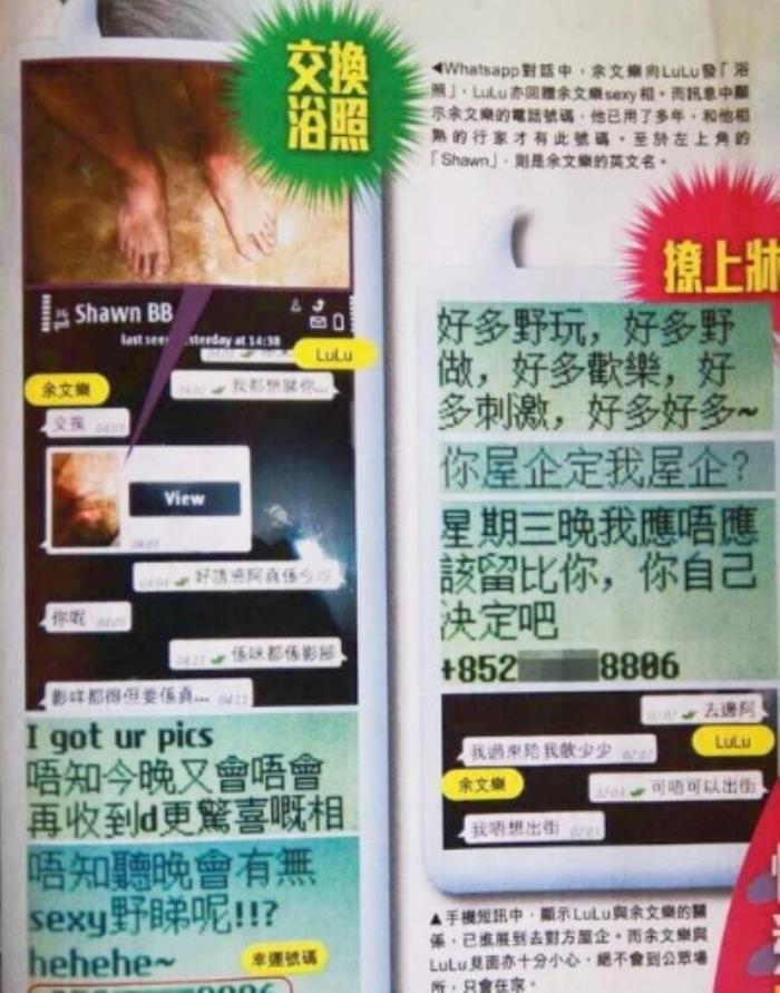 余文乐还被香港媒体爆出他和嫩模王璐瑶的情欲短信。余文乐向王璐瑶发了浴照,还对她发出邀请,“有好多野做,好多野玩,好欢乐,好刺激”。