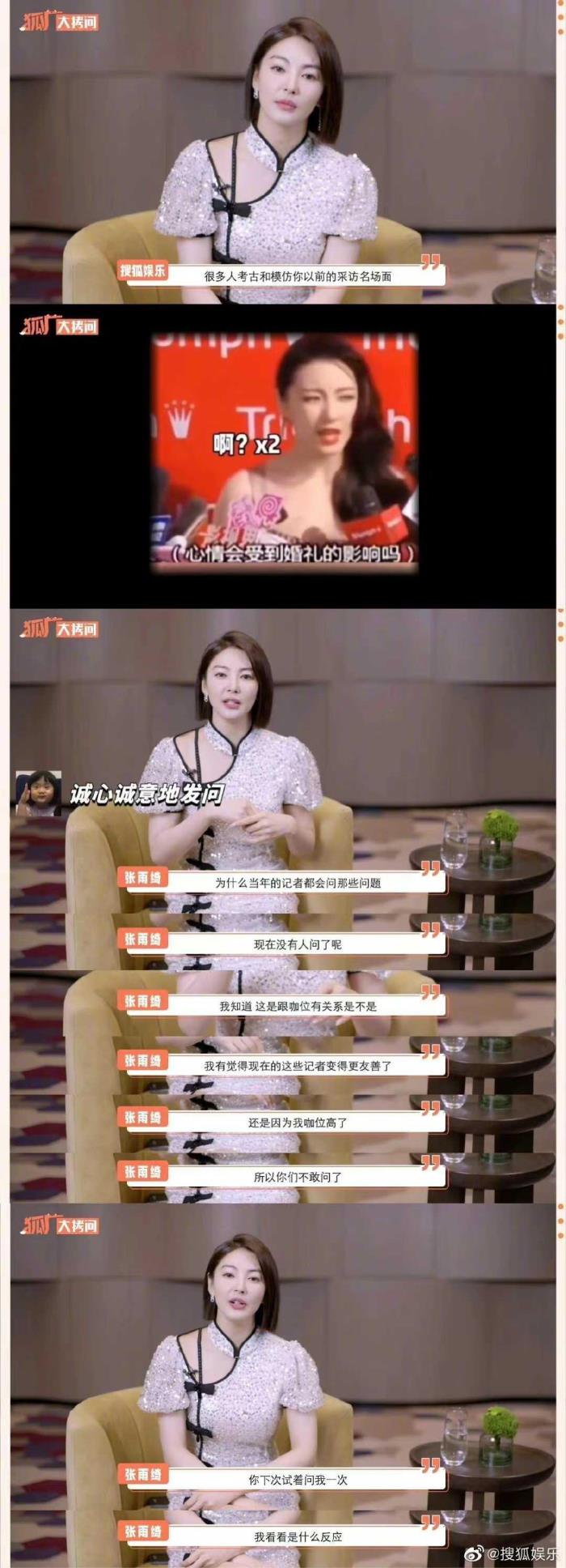 记者还犀利提问当年张雨绮拒绝回应前男友汪小菲结婚时装聋作哑的名场面,问雨绮会不会介意网友们考古这些视频呢?雨绮说当时心情很不好,所以不想回应这些私人问题。当时雨绮才二十多岁,正是容易动情的年纪。