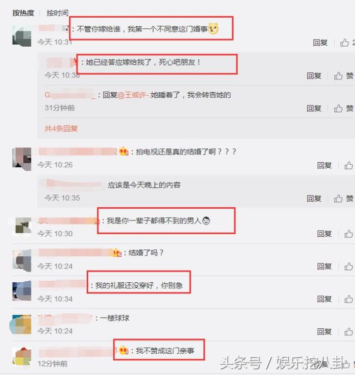 其中靠前的热评评论几乎都是调侃反对的。其中热评一的评论写道,“不管你嫁给谁,我第一个不同意这门婚事”。球球虽然称不上是明星,只能称作是网红,但是她的人气可并不低,而且算是网红中口碑非常好的一个,当然,这也跟《陈翔六点半》这个团队有关系。
