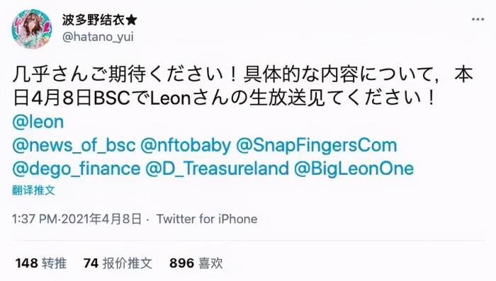 日本AV女优波多野结衣发布推特发布自己的NFT写真集!