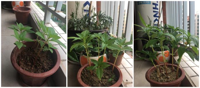 凤仙花有一个月时间处于成长期,快速生长出茂盛的叶子,大约在45天左右开始结出花苞。