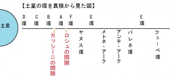 土星最内侧的环是“D环”,它距离土星中心位置在66900—74510km之间。于此对应的是土星最外侧的“菲比环”(Phoebe)。现今研究认为菲比环距离土星的距离在600—1600万km之间。所以,也就是说,土星环的范围在1600万km左右。