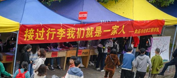 在该校李子园校大门,门口的一条“热烈欢迎来自祖国各地的2020级莘莘学子”迎新标语,大气恢弘,让新生感觉很温馨,一下子就拉近了与新生的距离。类似这样的标语还有食品与化学工程学院的“接过行李,我们就是一家人”,药学院的“确认过眼神,你是药学院的人”;也有一些大气恢弘的标语,如“天行健,君子以自强不息;地势坤,君子以厚德载物”.......