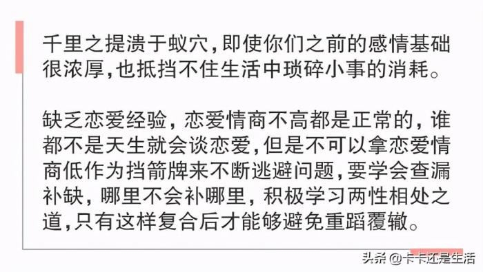 想想你们刚认识的时候,你应该也是现在的你,你也有这些问题的,可他依然是喜欢你、追求你、愿意和你在一起的,可见分手时候他提到的一些分手原因也是借口吧。