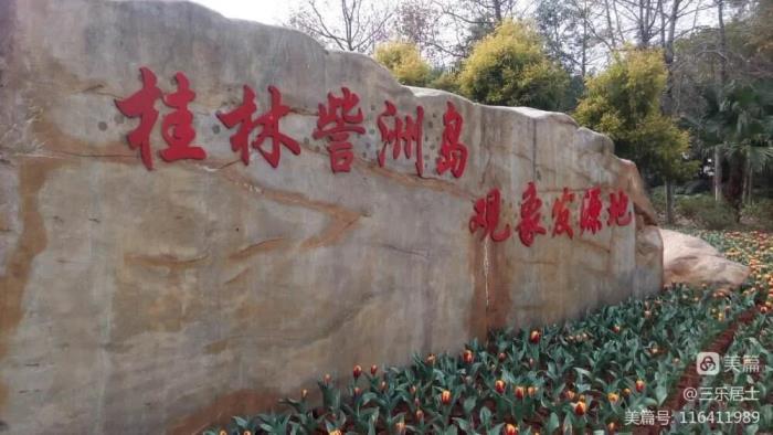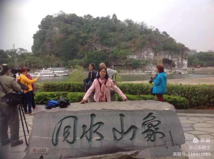 10月31日,是行程正式开始的第一天。上午9时,我们首先来到了訾洲岛。该岛位于漓江东岸百里画廊核心区,是漓江和小东江之间的一座洲岛。由于所处之地江面开阔,水流平缓,因此訾洲岛成为观赏象鼻山的历史起源地和最佳角度处。象鼻山是桂林城市的象征及城徽,记得1984年我和八位同学游桂林时,象鼻山还只是屹立在漓江上的一个孤零零的景区。