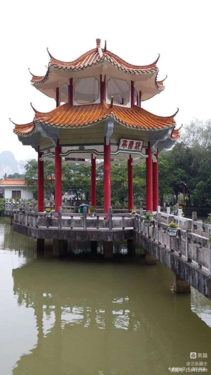 碑亭流芳是一组将人物和碑刻融为一体的景观。唐元和十年(815),著名思想家、文学家柳宗元应邀登訾洲岛游览后,作名篇《訾洲亭记》。详绘訾洲秀丽景色,给予了桂林山水极高的评价:“桂州多灵山,发地峭坚,林立四野”。还首次把桂林山水和甲天下联系在了一起:“今是亭之胜,甲于天下。”