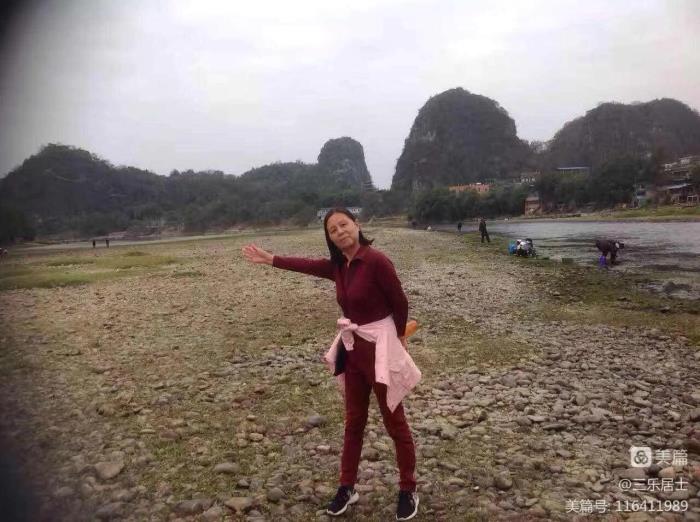 前行了约二公里,看到了前面宽阔的江面。此时才发现虞山是在大江的彼岸。于是转身从一座浮桥上通过,出乎意料,对岸是个村庄。村前种满了蔬菜和亚热带树木,村里鸡犬相闻、炊烟袅袅,一派田园风光。不少村民门口,栽着各种漂亮的鲜花,有的还挂着旅游广告。我们穿村而过后,却发现这里并不是漓江的北岸,而是江中的一个半岛。