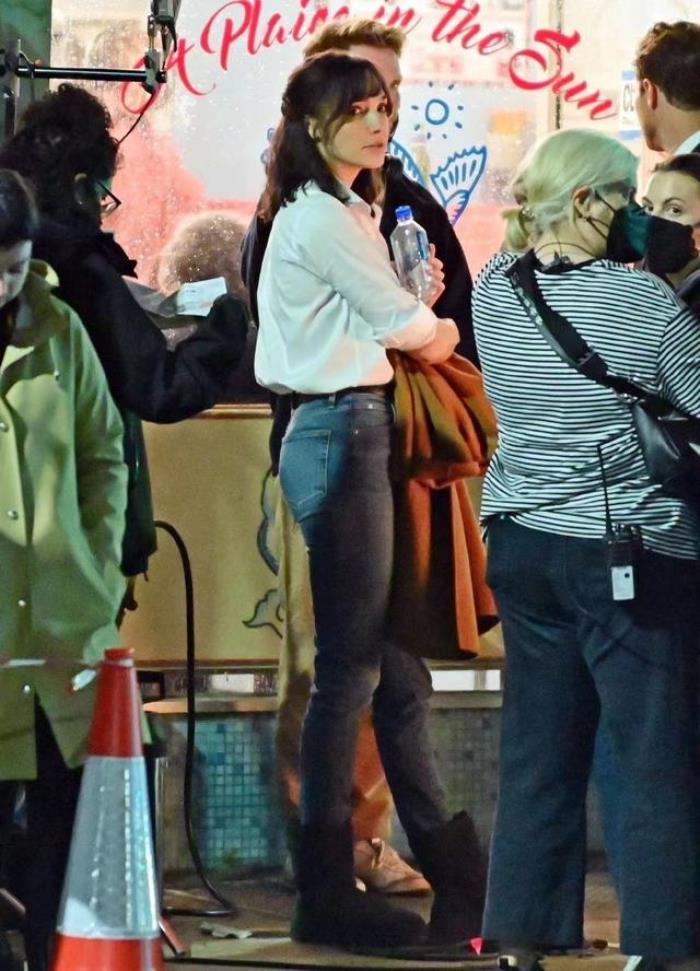 在《铁石心肠》的片场之中,37岁的盖尔加朵穿着白色衬衫加上牛仔裤亮相。