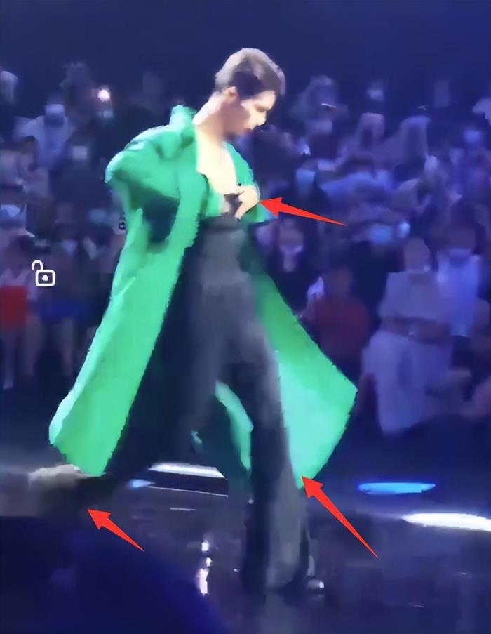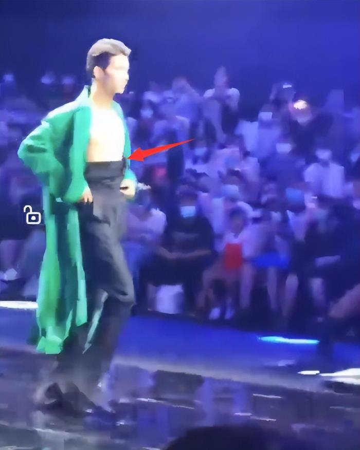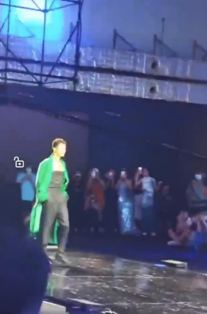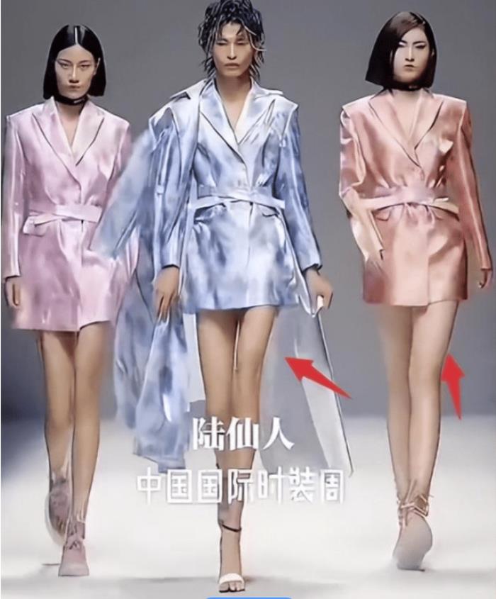 只是这场秀中还是出现了意外,比如前面都很顺利,陆仙人走到T台的前面,摆了几个POS停了几秒后,就准备转身往回走,可当时陆仙人继续双手插兜酷酷的走,突然他很快手从裤兜里掏出来,然后整理自己上半身的裹胸