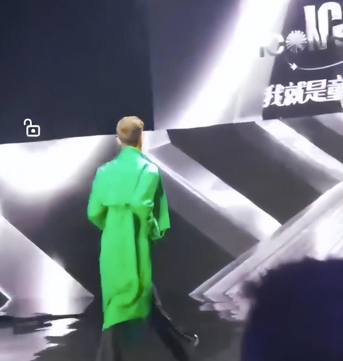 这是在一个“我是童模”为主题的走秀现场,陆仙人被邀请来做模特,这一天她里面穿一身黑色修身衣,上半身是裸露的裹胸,外面一件绿色大风衣