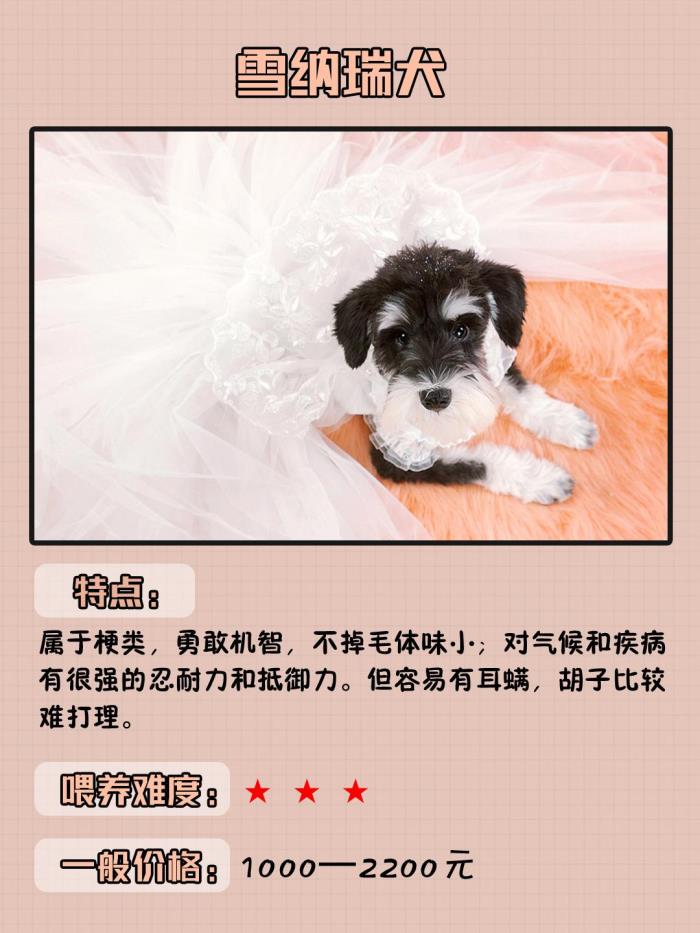 特点:属于梗类,勇敢机智,不掉毛体味小;对气候和疾病有很强的忍耐力和抵御力。但容易有耳螨,胡子比较难打理。