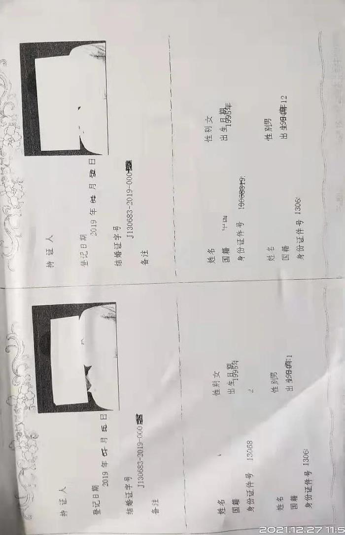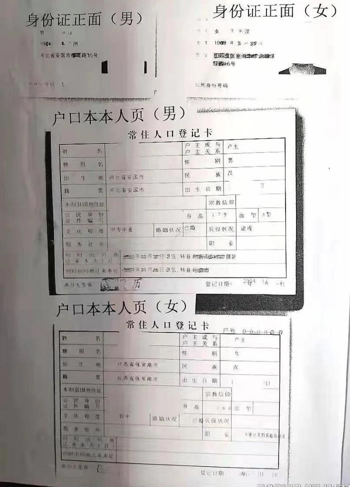 下面是身份证、户口本、和结婚证准备材料中的格式!