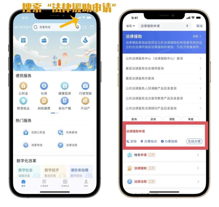 “浙里办”已上线“法律援助申请”服务。当公民为维护自己的合法权益需要法律服务,因经济困难无力支付法律服务费用,可以在线向法律援助机构申请法律援助。