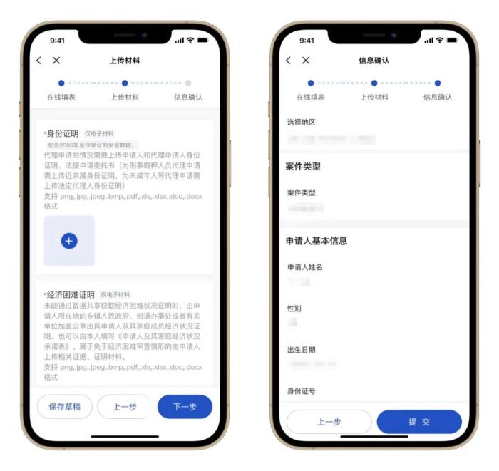 “上传材料”后进行“信息确认”