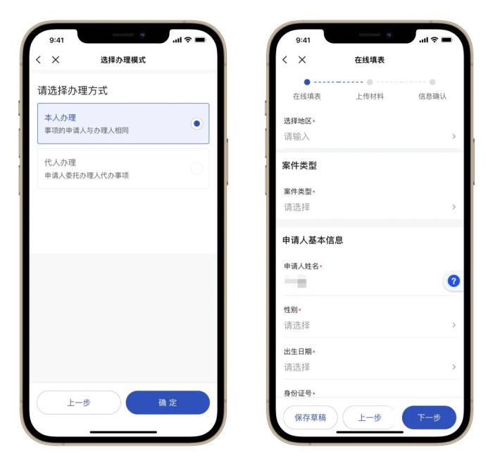 选择你要办理的模式