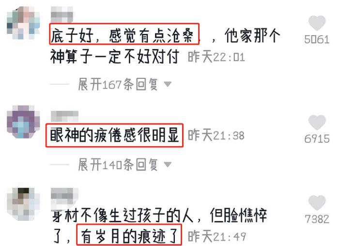 对此,不少网友评论孙莉的底子很好,身材不像生过孩子的人,但还是挡不住岁月的摧残,脸显得很憔悴,眼神的疲倦感很明显。