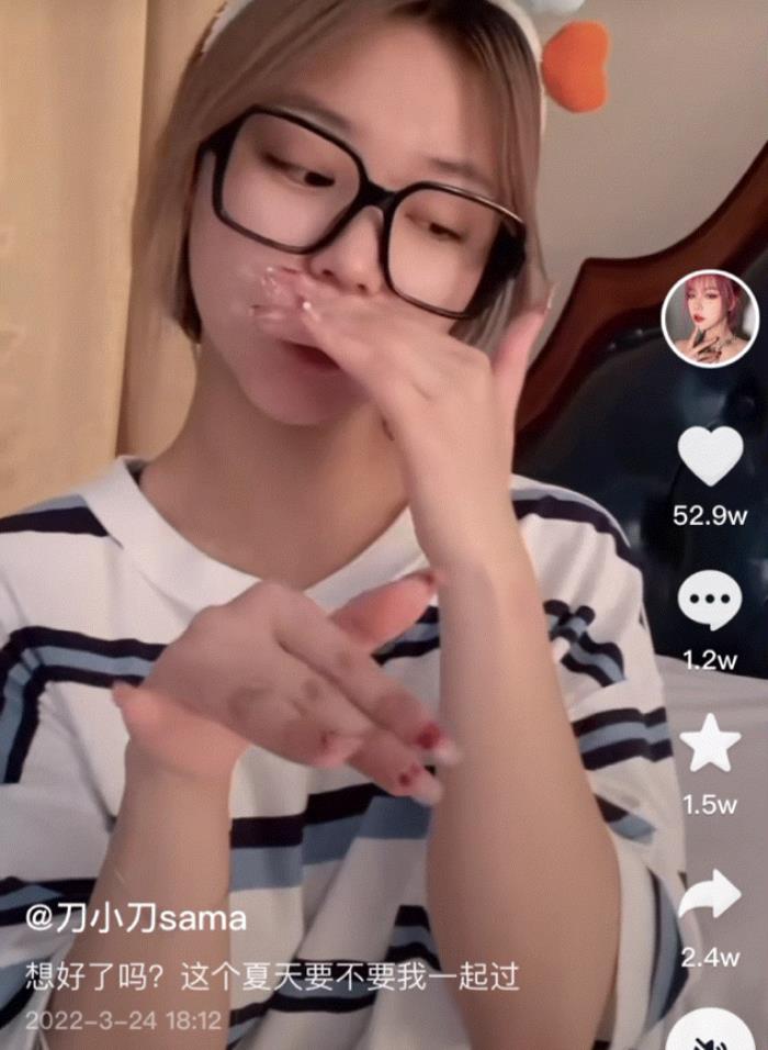 随之而来的是过高关注度下的压力,一下被推到高处,刀小刀的精神状态变得格外紧绷。她知道自己该抓住这波流量,又担心新的作品无法让新关注的粉丝满意。她将全部心思都扑在了下一条视频该做些什么上,每天基本只吃得下一顿饭,一天掉一斤秤。