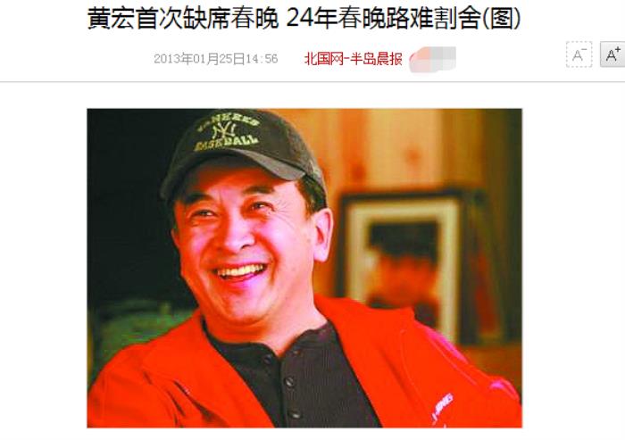 2013年,多次连登春晚的黄宏突然宣布将会缺席春晚,原因是因为职务在身,没有更多时间彩排。