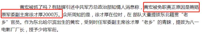 除此之外,当时关注度最高的一个帖子,写的是黄宏不仅被免了职务,还被“带走”。