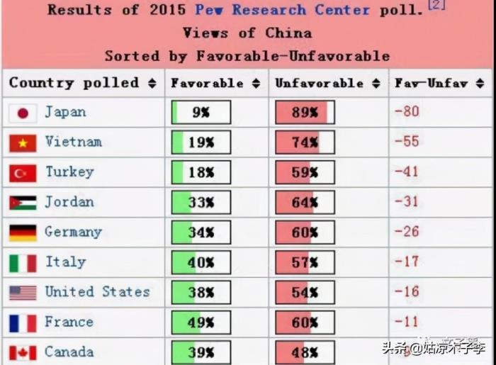 看看,2015年BBC曾做过一个世界各国反华情绪排行榜。