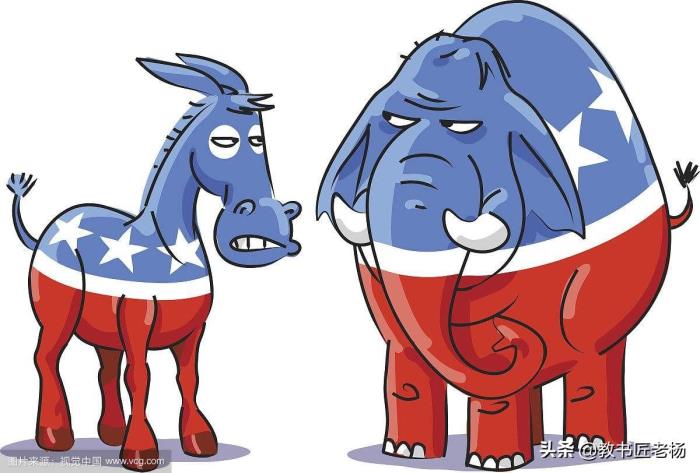 两党以在国会大选中获席位多少区分多数党或少数党。近两年共和党在参众两院均为多数党。两党党员人数不定,视投票情况而定。民主党的标志为驴,共和党的标志为象。