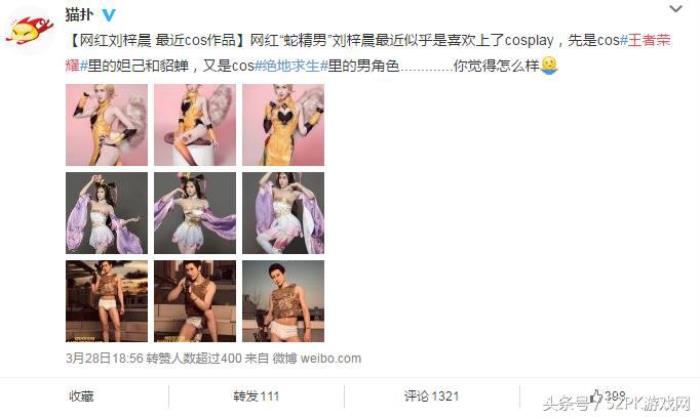 之前还COS过貂蝉小姐姐,现在又来COS妲己。甚至连绝地求生里的男英雄都COS了。不知道他是因为喜欢王者荣耀还是想借我们妲己小姐姐再火一把,不少网友都评论说,别再玷污妲己了,不过就是一个过气网红的垂死挣扎罢了。