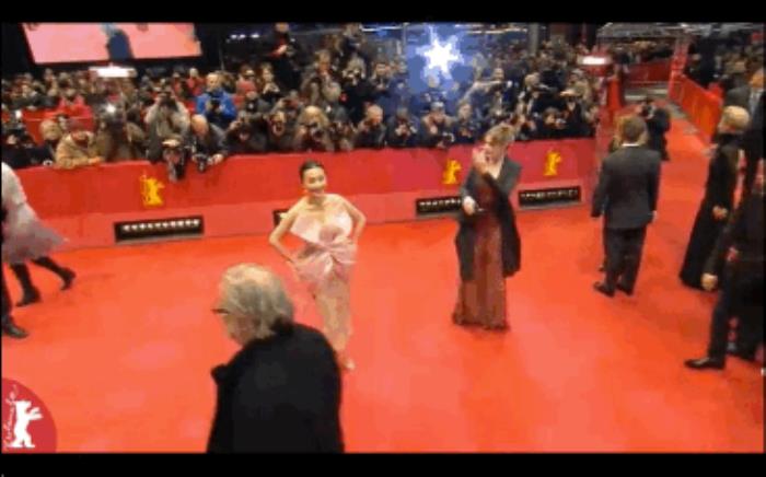 柏林影展老婆美美独照,小跑步过去,老婆一个眼神又乖乖等候的影帝。