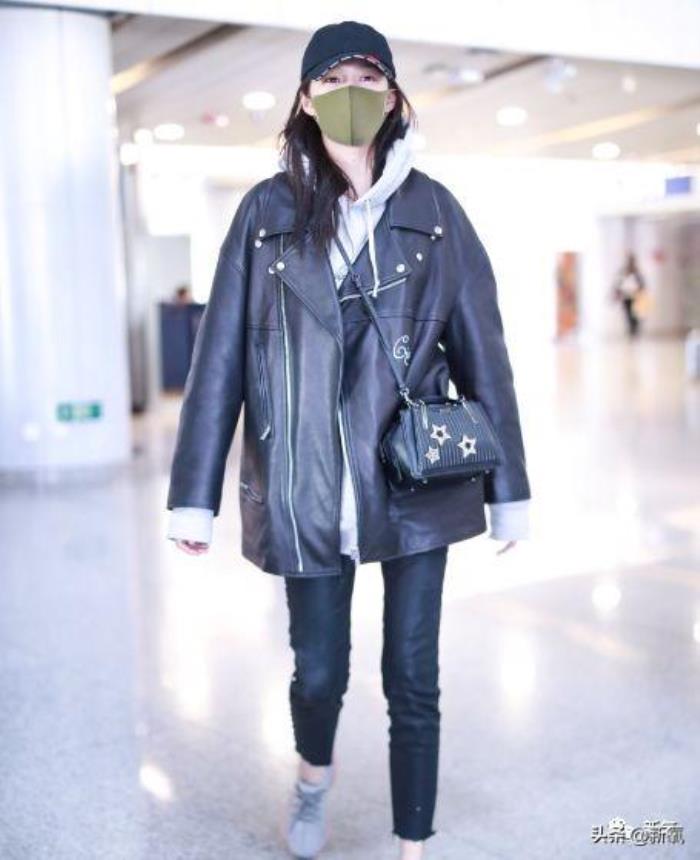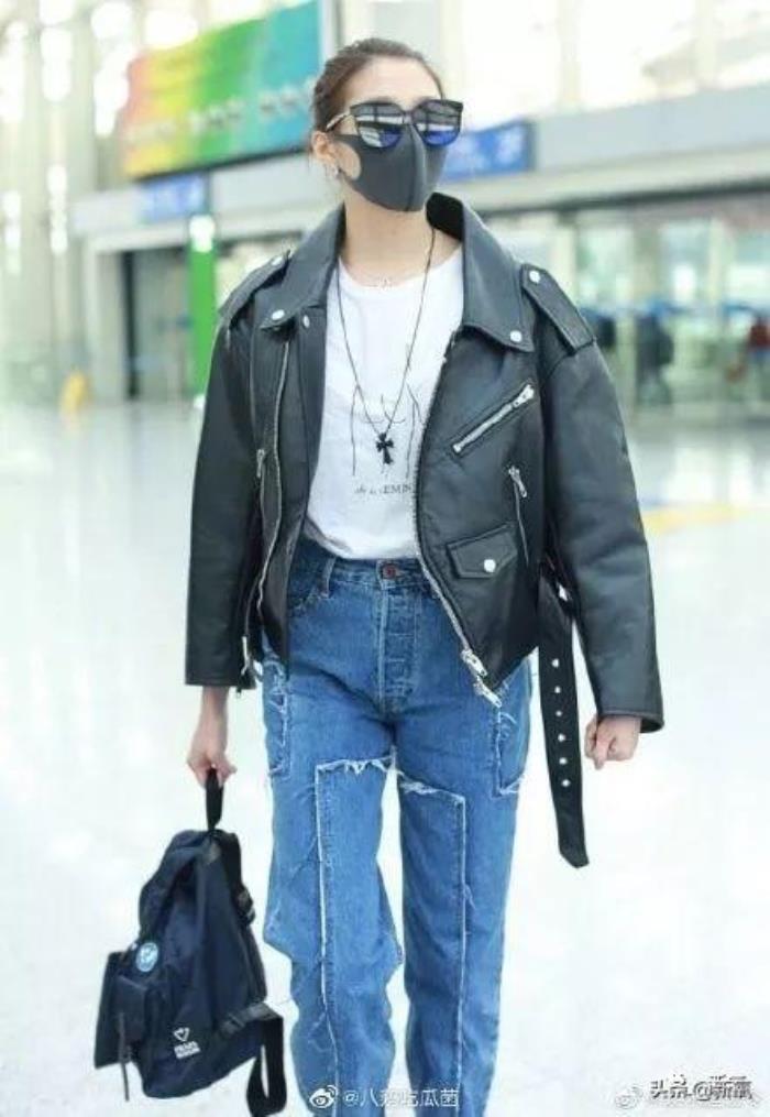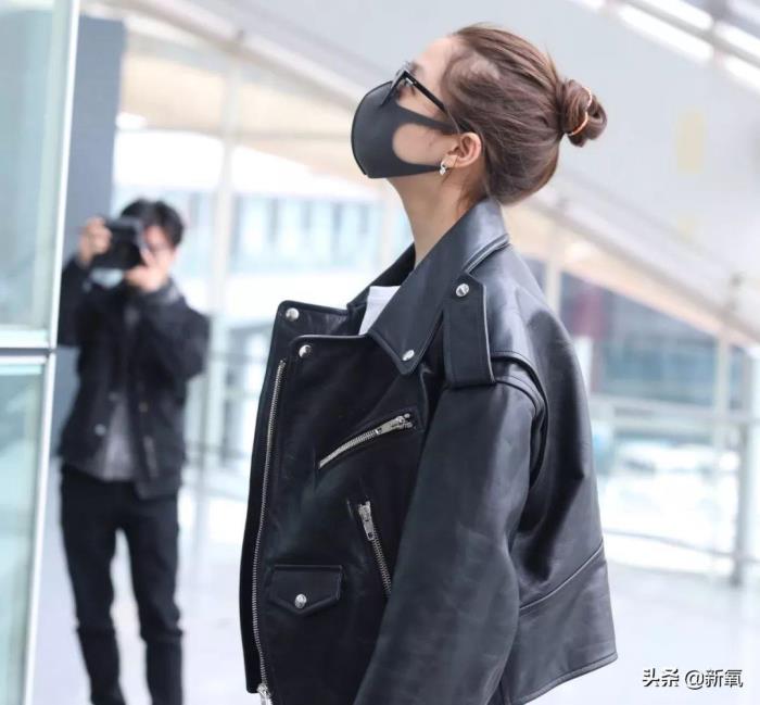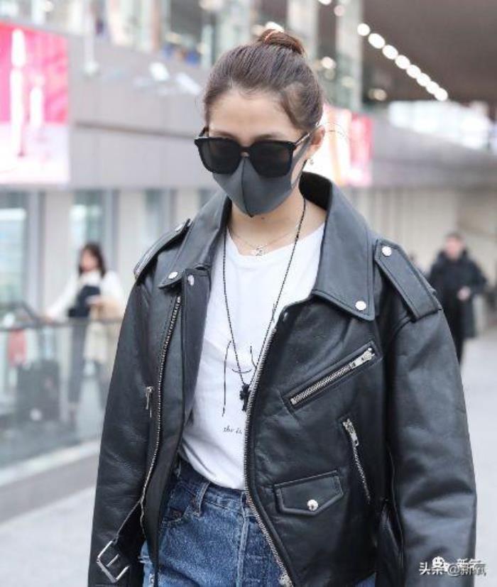 好久没露面的关晓彤一身黑色皮夹克+牛仔直筒裤+小白鞋现身北京机场。