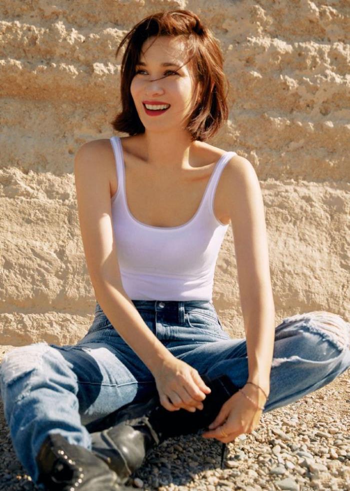 对于腰腹部赘肉少或者是没赘肉的女性,我们可以采取吊带衫下摆完全塞进裤腰的方式,使得腰线的位置得以强调和提升,从而达到显高又显瘦的效果。不管是身材不协调还是小个子女生,外在形象都能得到修饰,尽显女性高级魅力。
