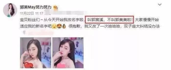 于是她将自己开始的社交账号“郭美美baby”丢弃,换用“郭美May努力努力”,还将自己的名字改成了“郭宸溪”,想把自己以前的错事忘掉。
