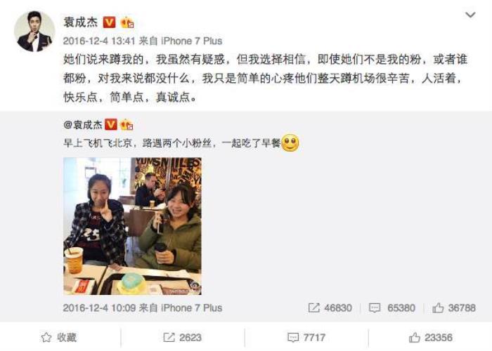“我以后不能追了,”一姐发来微信说,她根本不希望用直播和采访炒作自己,“那样我就会更红,都在机场等我,我没自由的。”