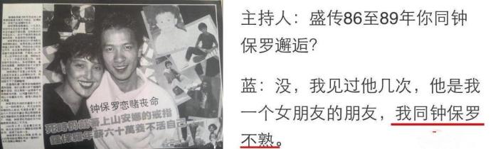 其实蓝洁瑛在后来的采访中有澄清过,她与钟保罗并不熟,因此两人并非外界传闻的那样,而且后来钟保罗自杀时,手上戴着上山安娜(张智霖的表姐)的戒指。