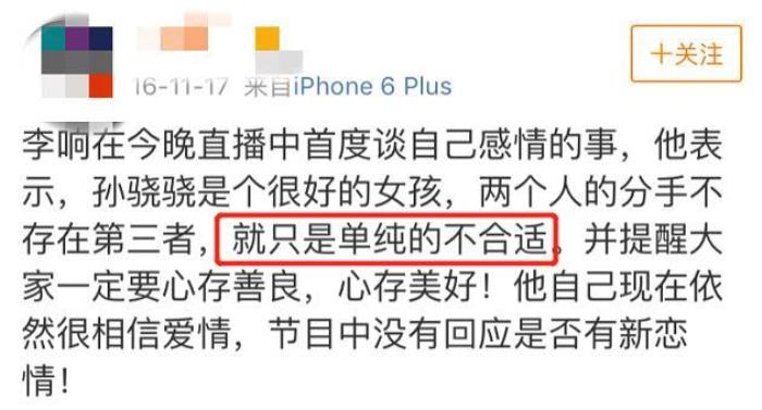 但是两个人终究没有逃过分手的结局,在2016年,每年准时为女友送上祝福的送上生日祝福的李响却毫无动静,并且孙骁骁还在社交平台取消了对李响的关注。