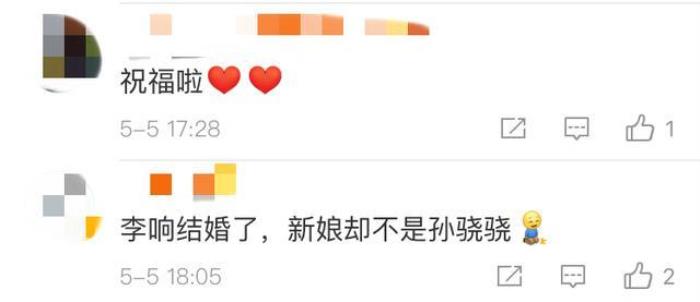 不过翻看下面的评论却发现,虽然大多数网友表示恭喜和祝福,但是还有不少网友表示了疑惑:李响怎么突然结婚了?他以前不是一直和孙骁骁在一起吗?现在突然说新娘是圈外人,那他和孙骁骁那八年就结束了?