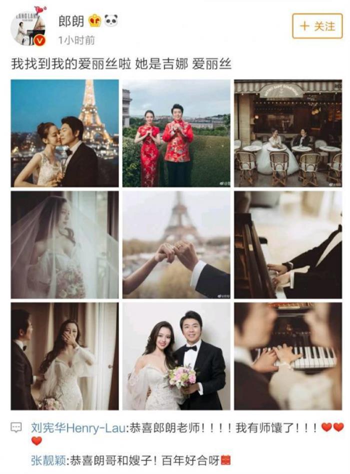 从晒出的婚纱照看,今年36岁的郎朗和比他小12岁的新娘吉娜 ·爱丽丝十分登对,可谓郎才女貌。