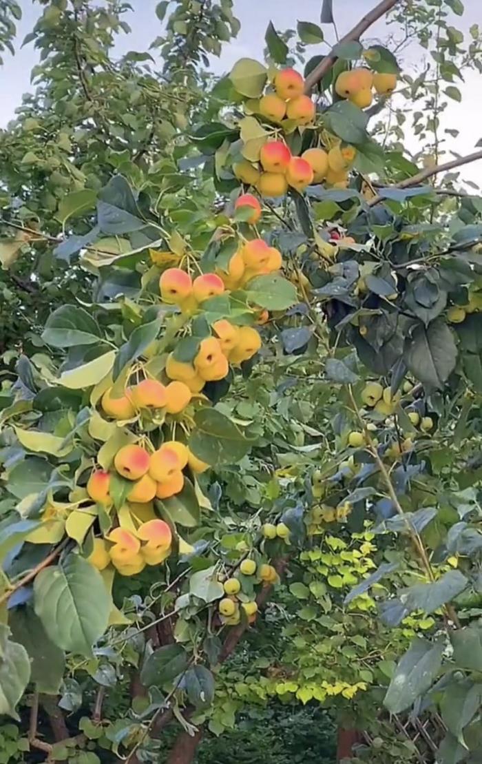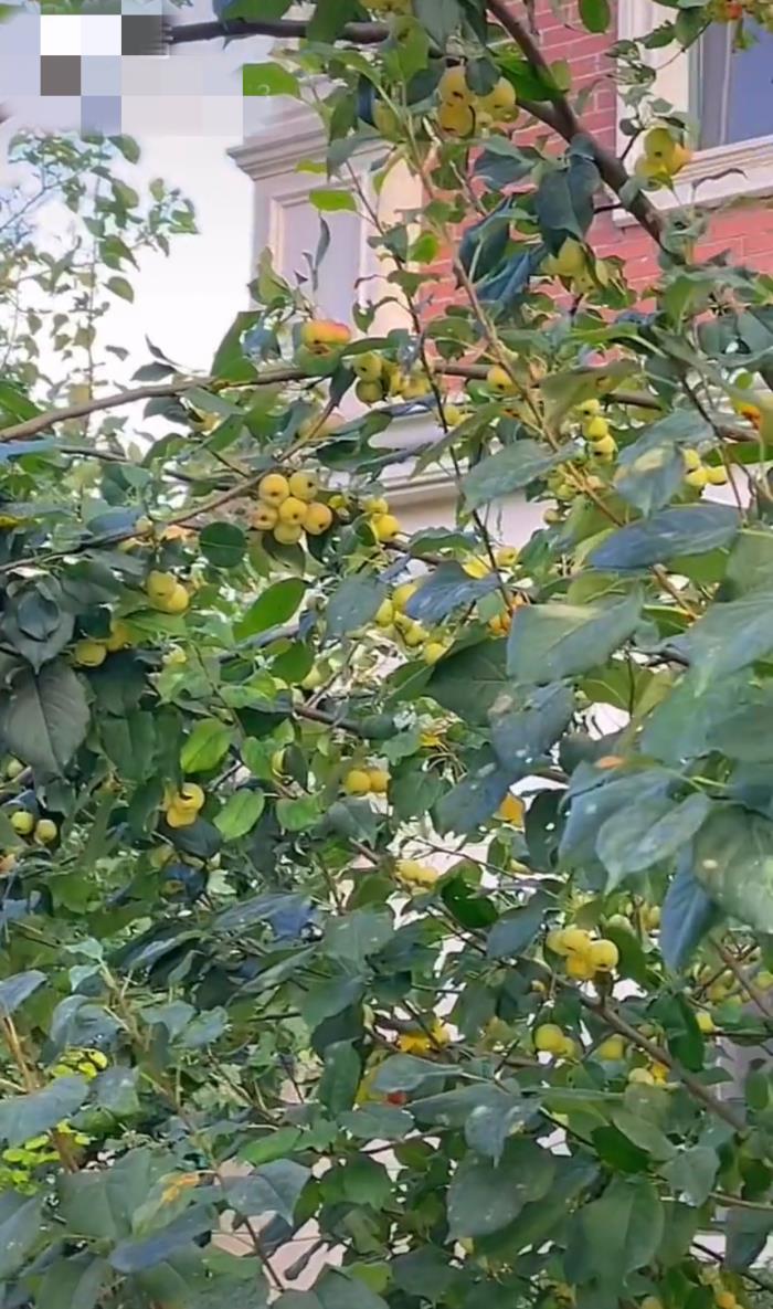 院子里种满了果树和花草等,放眼望去,一片绿树中有一些金黄色的果实,景色宜人,令人心旷神怡。